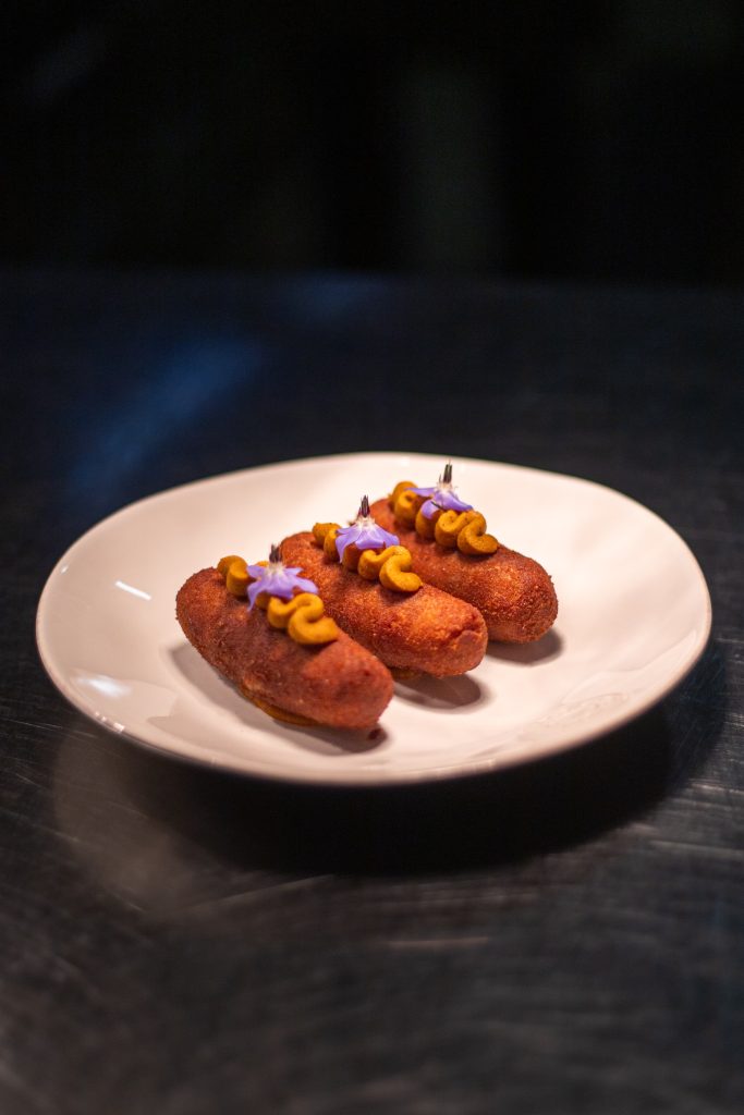 3.5€ · CROQUETE DE PATO E MOSTARDA DE CENOURA