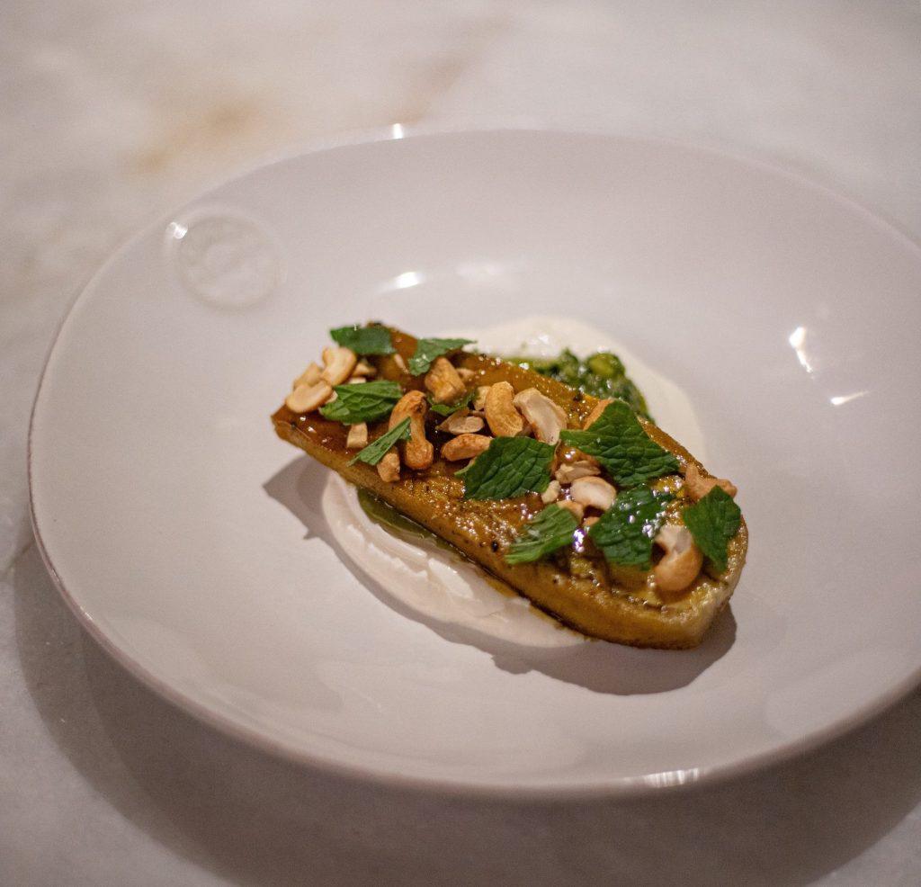 Eggplant, Honey, Spices and Cashew Nuts